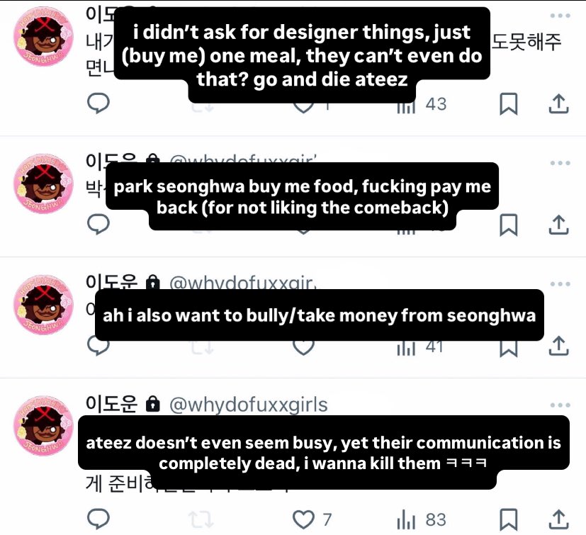 i know i’ve been ia but we need to talk about 모데 / @ arigaddeong someone has leaked their private account and it’s disgusting, especially knowing how big their following is and how often they talk to SH trans in thread (TW: fatphobia, vulgarity, death threats)
