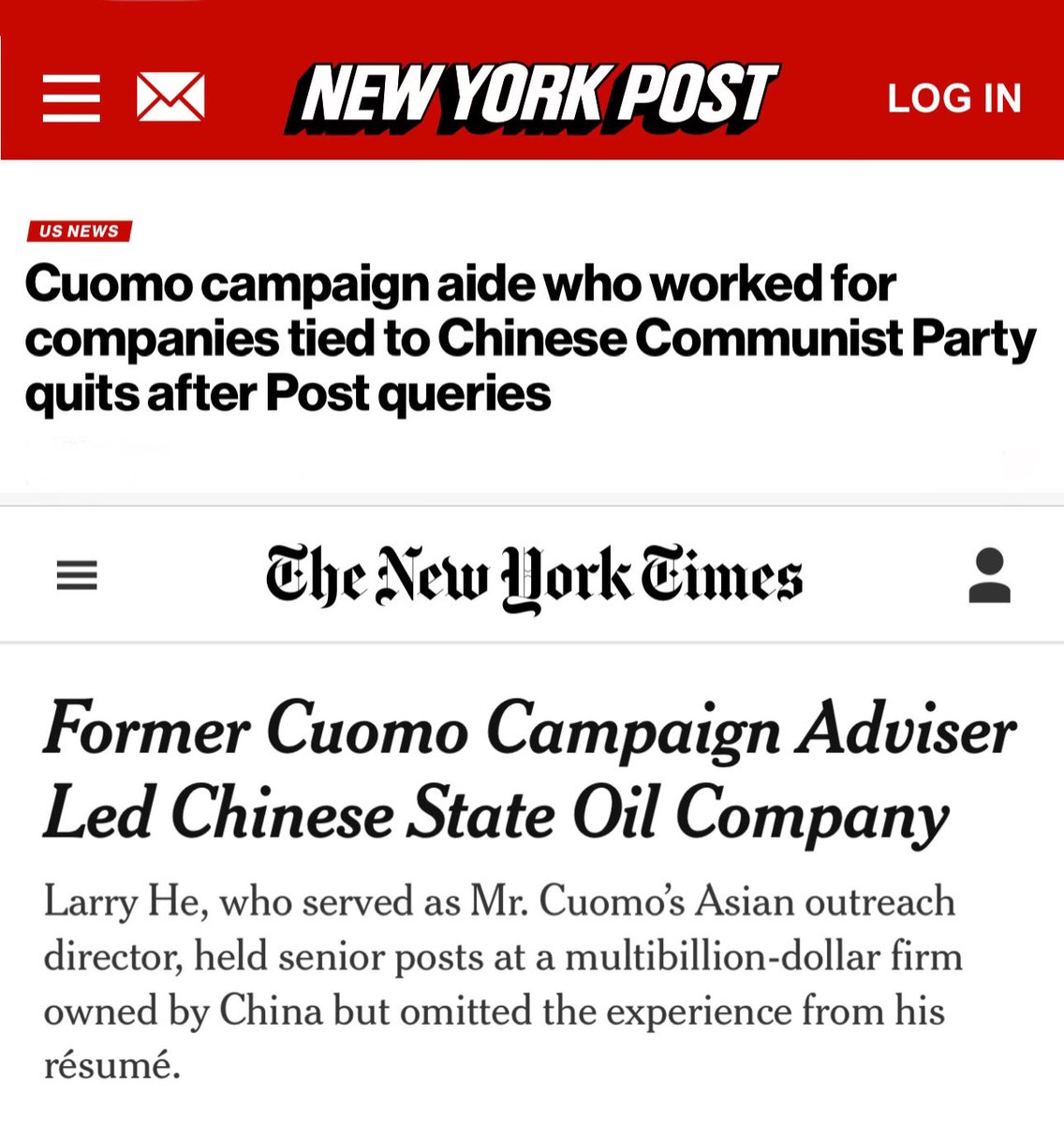 Lining “Larry” He (贺立宁), a mayoral campaign aide to Andrew Cuomo, has stepped down from his role as Cuomo’s Asian outreach director after He was questioned about the years he spent working for companies tied to the 🇨🇳 CCP and his meteoric rise through the Democratic Party,