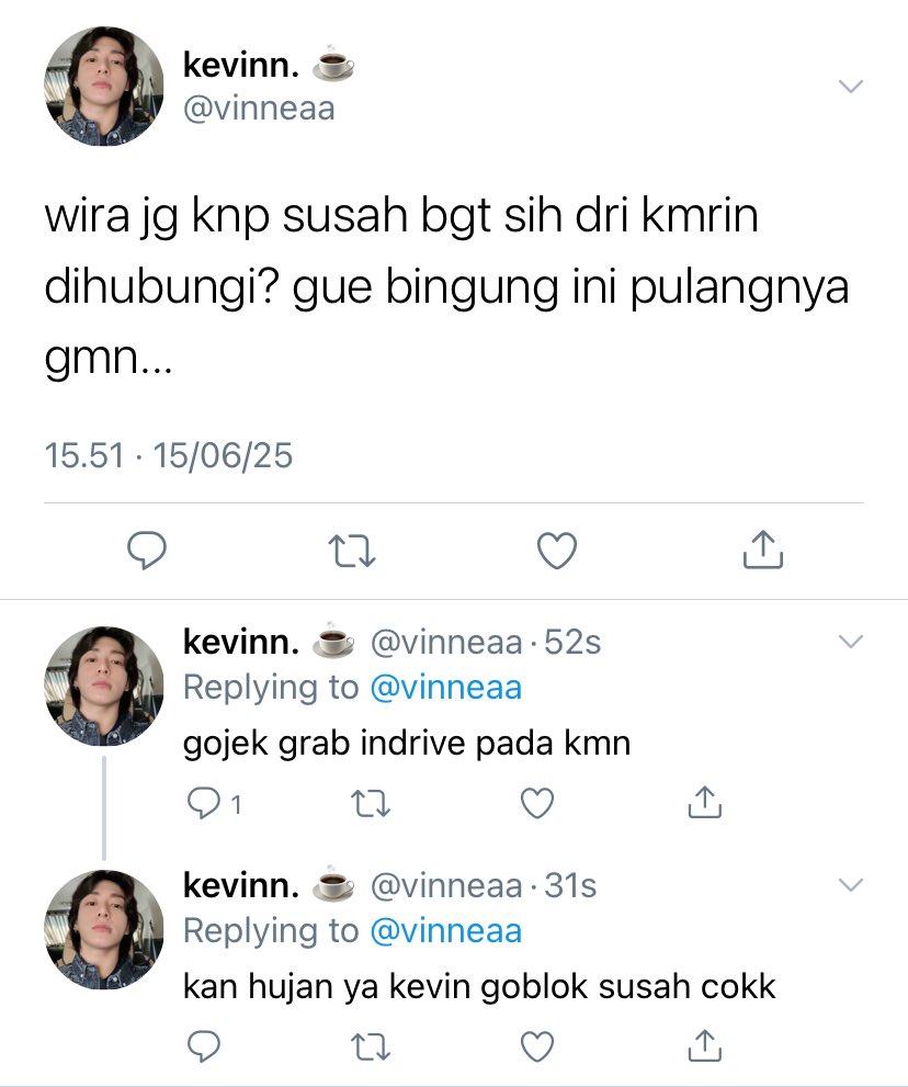 taekook lokal au; ā Denial.exe Kevin itu pure top (menurutnya) jadi dia ga mau ribetin perkataan Kino. Tapi si brondong satu itu keras kepala banget.