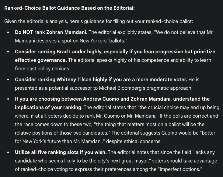 For all those confused by the NYT non-endorsement editorial, we ran it through ChatGPT and asked the AI to convert it into ranked-choice guidance.