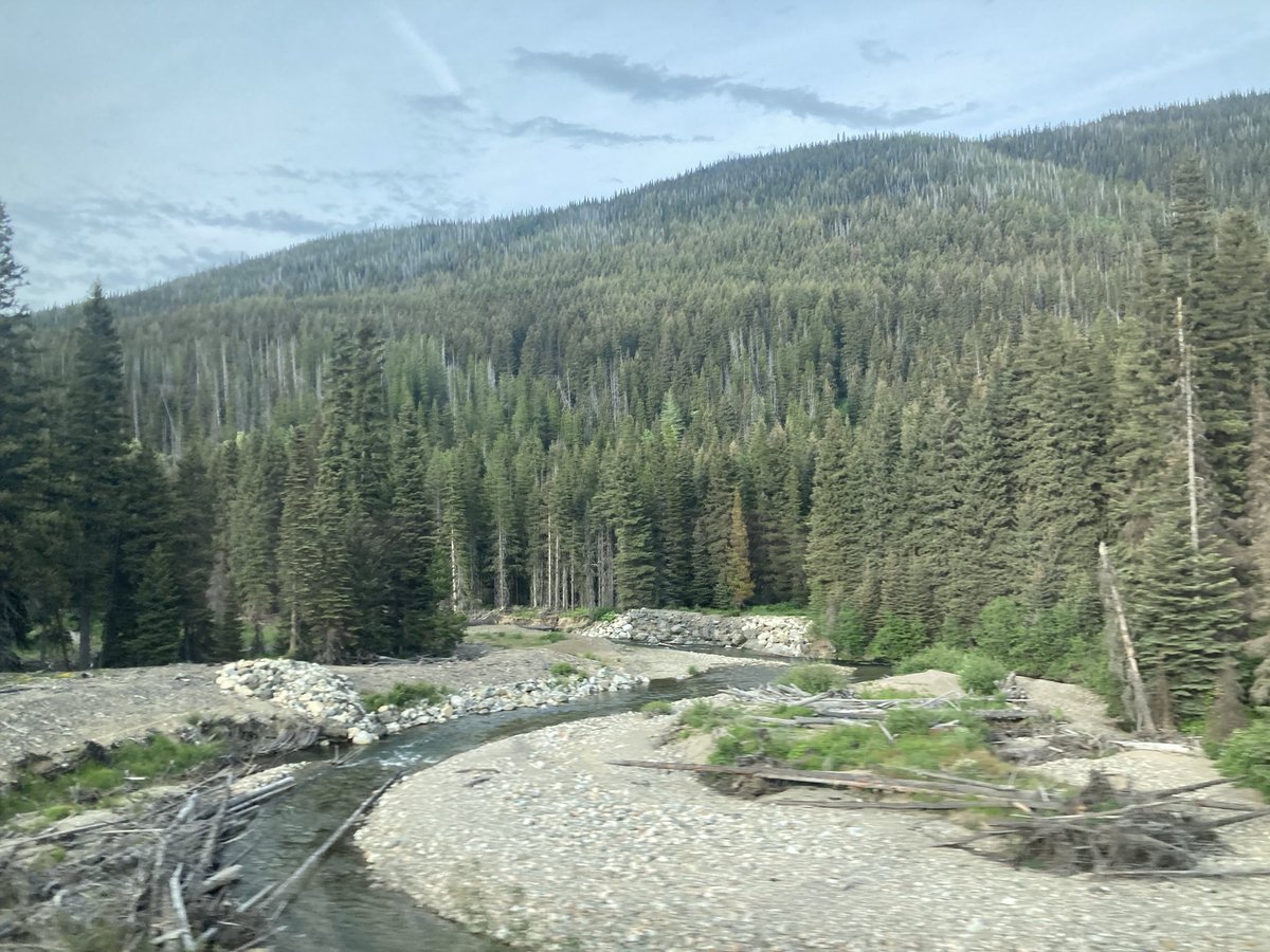 Good morning from Golden, BC...we're currently running two hours late and counting because of a crash somewhere earlier in the mountains...and now we have an unresponsive passenger and we're waiting for an ambulance to arrive.