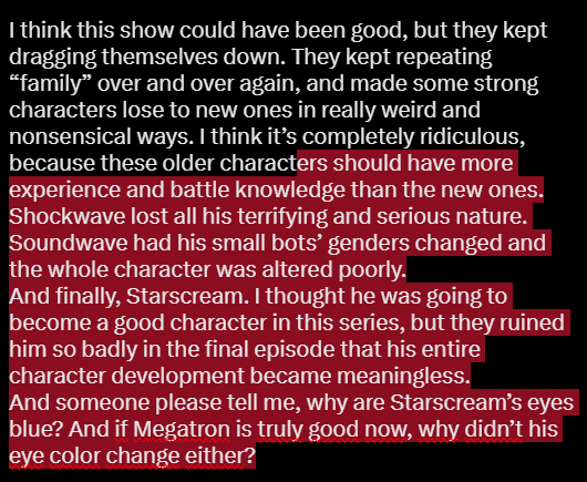@PaperPlaneTF i mean Earthspark Optimus Prime with its design is still pretty good imo but i sometimes i agree about hating him like i kinda wished he stayed masked on but oh well