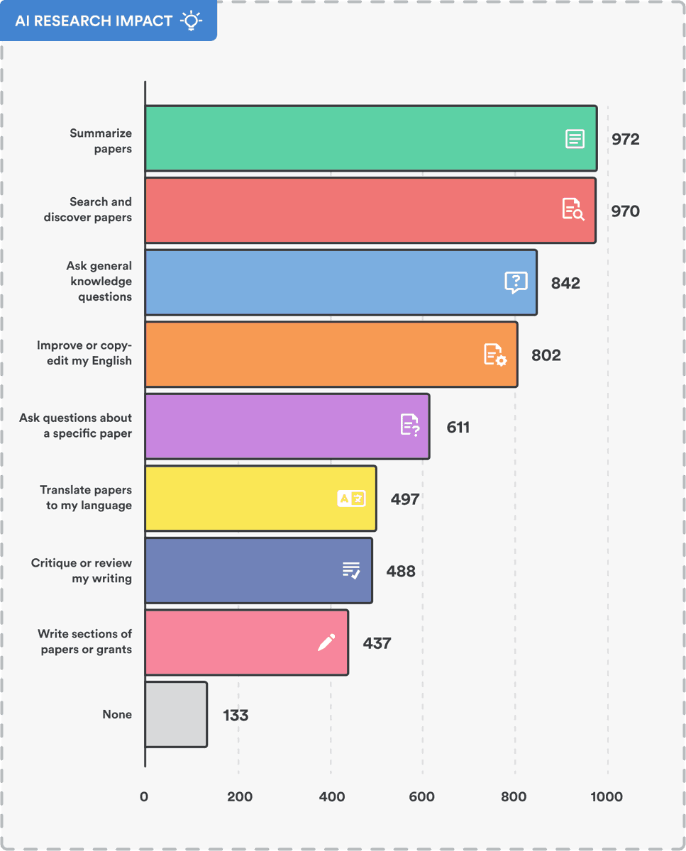 4. Most researchers are excited about the potential for AI to improve their work life. But there's a minority (<10%) of users who are anti-AI, for a fascinating array of reasons.