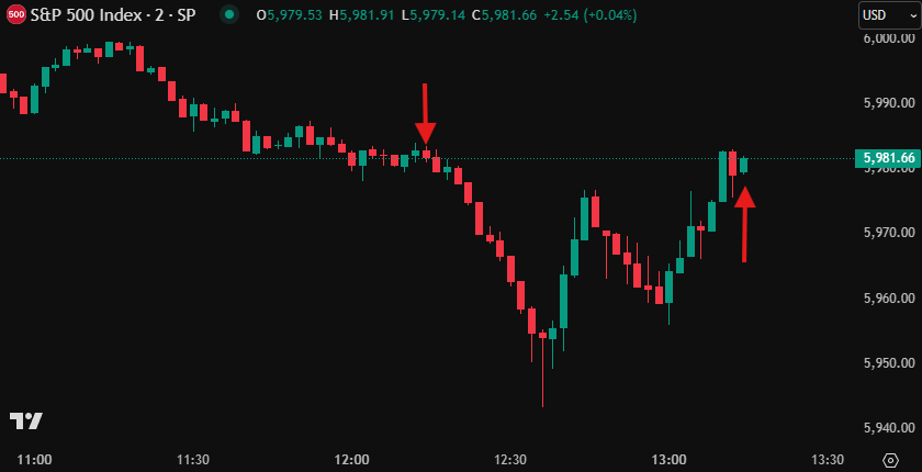 Take a look at the S&P 500. At 12:10 PM ET, the index began its decline, falling nearly -45 points on the news. Since then, just one hour later, the market has recovered all of its losses. In fact, stocks are on track to close the daily in the GREEN despite all of the chaos.