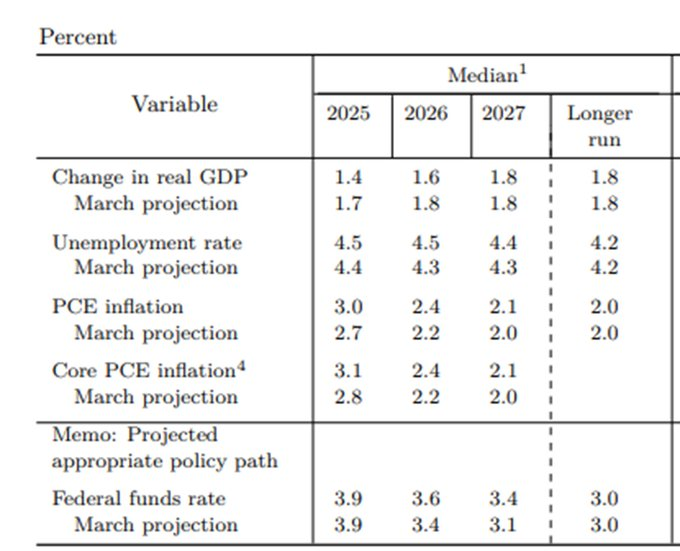 Here's what the Fed thinks of Trump's policies: 🔴Growth slower 🔴Unemployment higher 🔴Inflation higher 🔴Interest rates higher 5/END