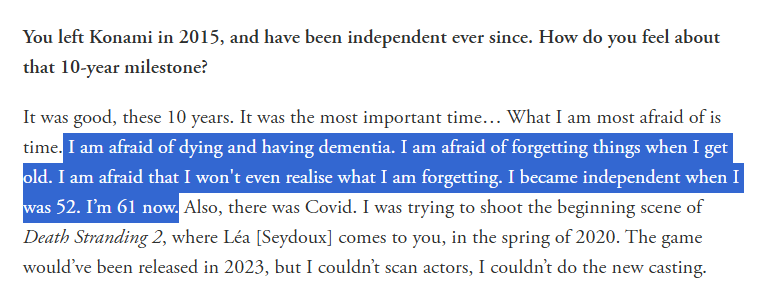 The Kojima GQ interview is touching & heartbreaking. This is why I fight relentlessly for our independence as a studio, no matter how long & arduous this path is. https://www.gq-magazine.co.uk/...