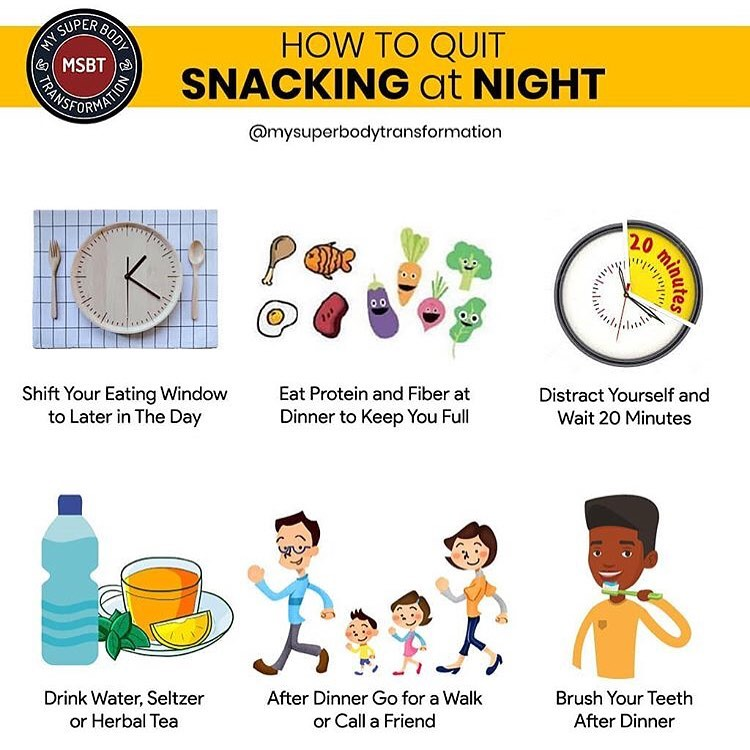 11. 99% of people on the planet battle late night snacking. The two best ways to combat it: ⚬ Remove temptation from your house (if it's there you'll eat it) ⚬ Brush your teeth immediately after dinner (it will taste like crap if you eat it)
