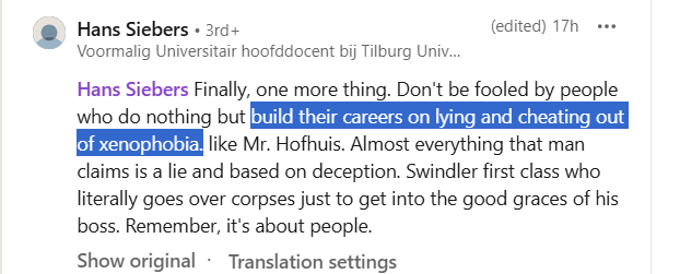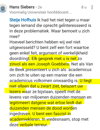 It's completely unprofessional behavior, but Prof. Hans Siebers knows he will get away with it. I've been called a "racist idiot" by a tenured professor as well, for deviating from left-liberal consensus. Read his unhinged rant here on LinkedIn (Dutch). /2 https://www.linkedin.com/feed/...