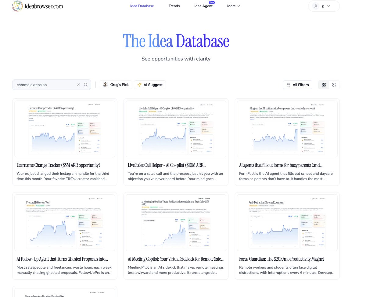 we've got a few chrome extension startup ideas in the @ideabrowser database --> http://ideabrowser.com