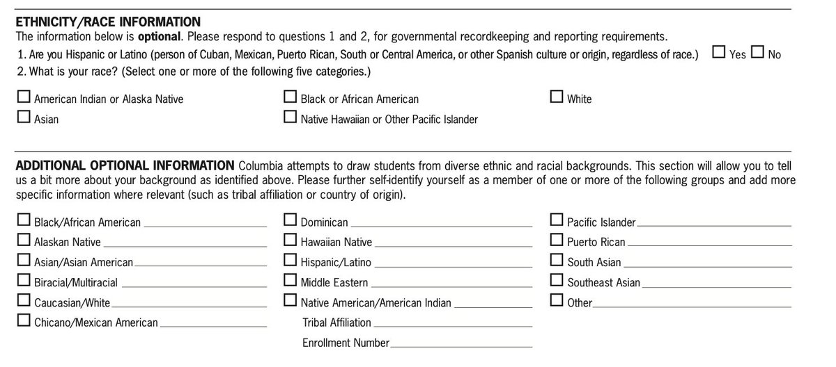 These are the questions @Columbia posed to applicants about race and ethnicity during the 2009-2010 application cycle when Zohran Mamdani applied. He indicated that he was both Black or African American and Asian. “Most college applications don’t have a box for Indian-Ugandans, so I checked multiple boxes trying to capture the fullness of my background,” said @ZohranKMamdani, a state lawmaker from Queens. The archive of the application form: https://web.archive.org/web/20... The @NYTimes article I co-reported on Mr. Mamdani's application to Columbia: https://www.nytimes.com/2025/0...