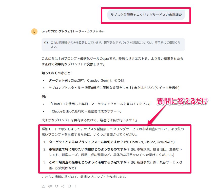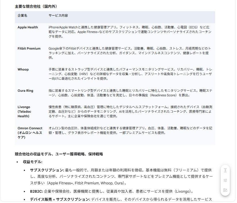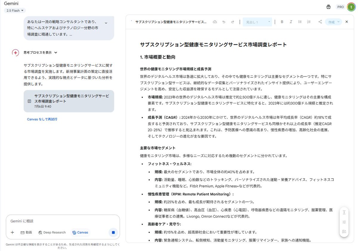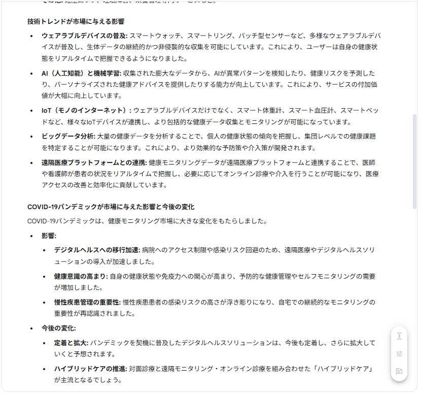 📝使用例 ✅️入力 ―――― サブスク型健康モニタリングサービスの市場調査 ――――