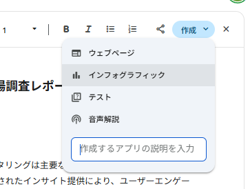 さらに、結果をワンクリックでインフォグラフィック化できる ※長文をいきなり読むより、先にインフォグラフィックで全体像を把握がオススメ