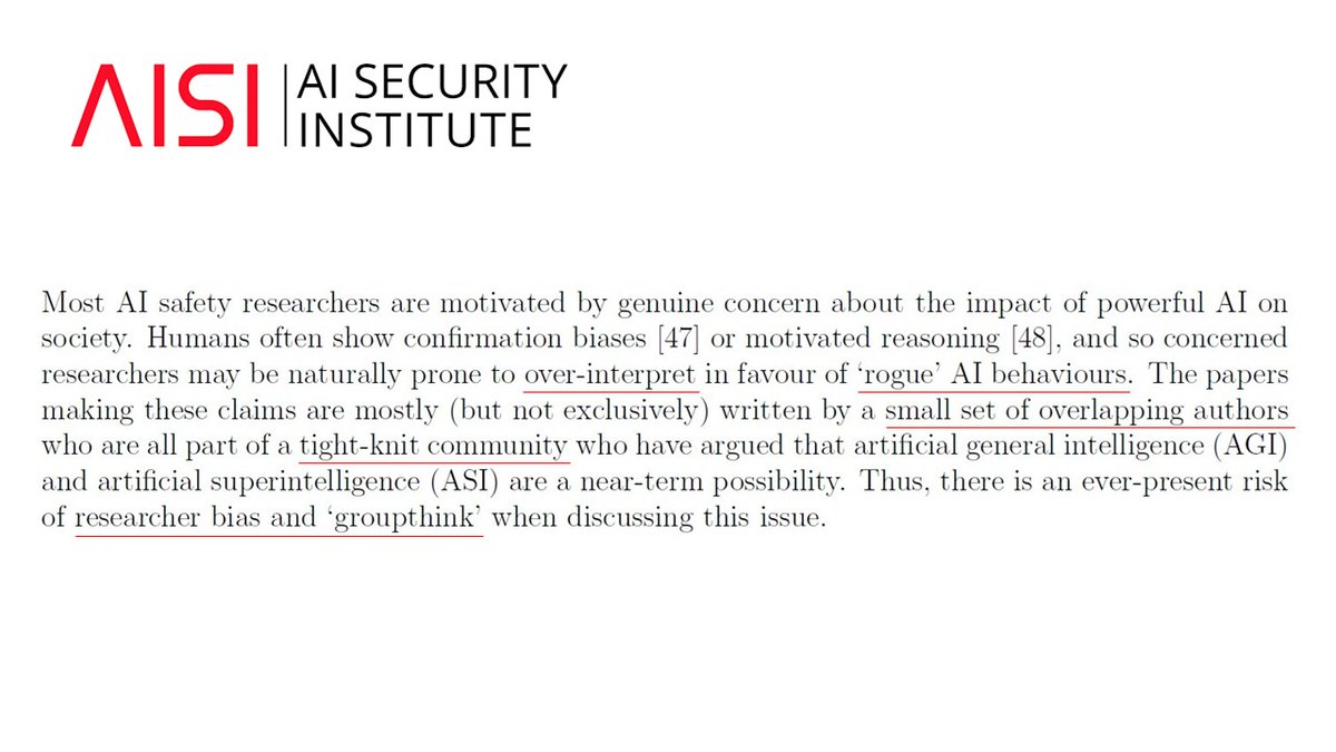 According to AISI: · "If the behaviour denoted 'scheming' is merely instruction-following, then the use of this term is not warranted." · "Much of the research into AI 'scheming' is published in blog posts or results threads on social media. Even where preprints are published,