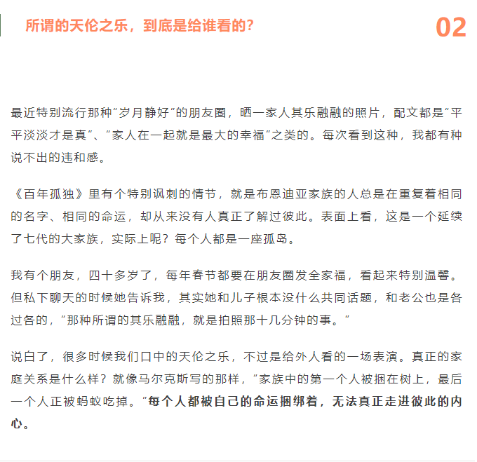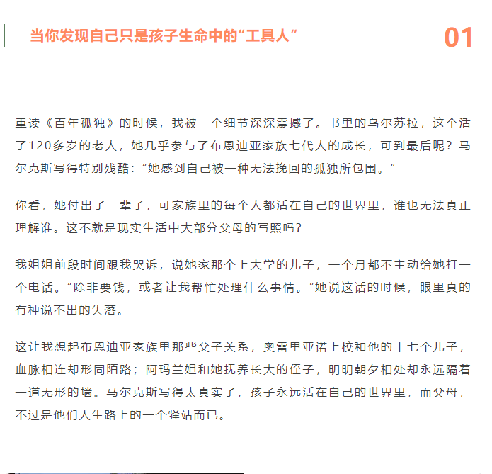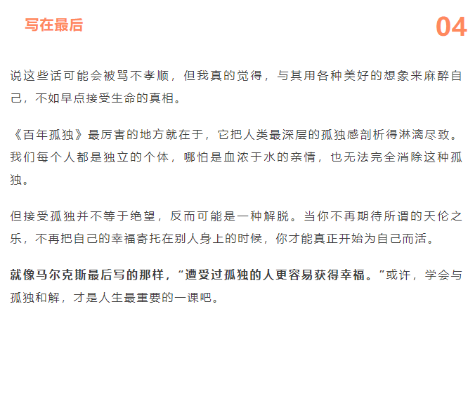 《百年孤独》:等你老了才会明白,所谓的天伦之乐不过是自欺欺人的幻想;孩子的世界里你早已不是主角,只是偶尔客串的路人 多多关心身边的长辈,不让他们孤独。