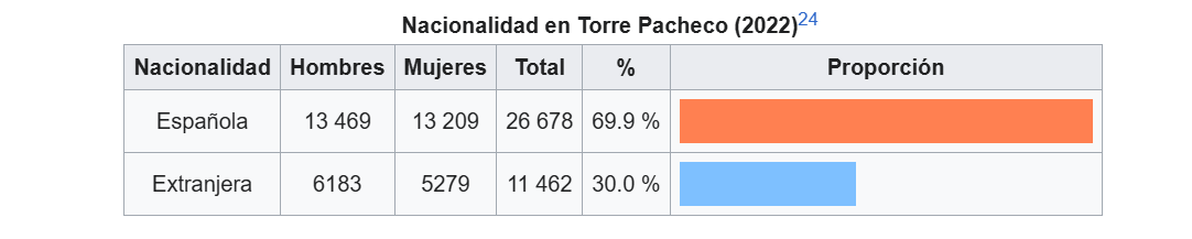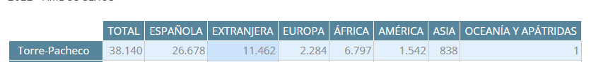 Torre Pacheco est une de ces petites villes espagnoles, agricole, où la proportion de population étrangère est élevée. Selon les propres données de la municipalité, consultables ici (https://sitmurcia.carm.es/web/... la majorité de la population étrangère de la ville est d'origine
