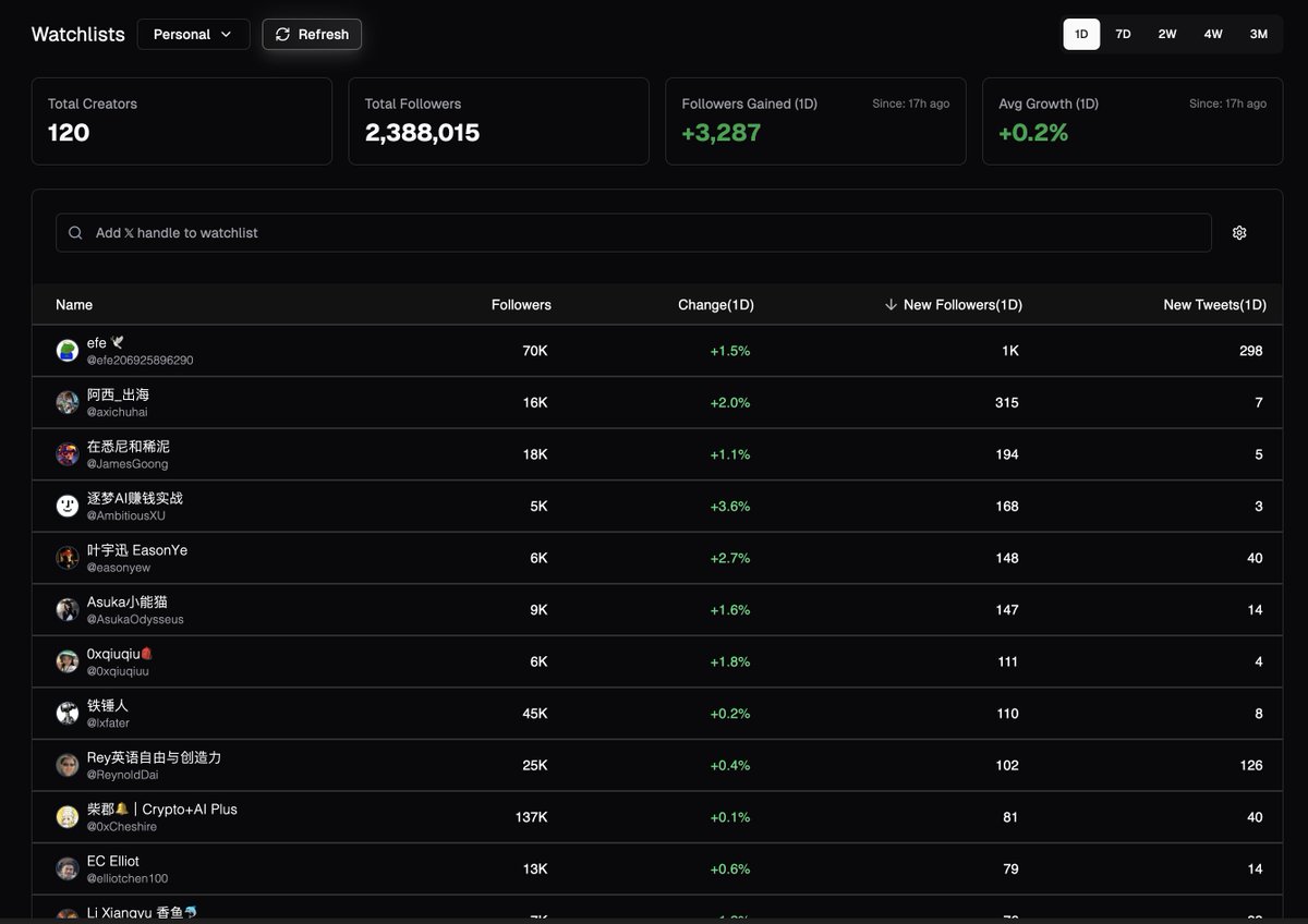 昨天拉了一个【X 影响力支持群】,核心目的是互相助推、提升影响力。目前 28人,粉丝数 516k 灵感来自 Justin Welsh、Matt Gray 等人构建的创作者小圈子 —— 一发帖就有几十上百条评论互动,通过 集体协作 放大影响力。 我们也希望通过这个群,慢慢聚集一群认真做内容的人,长期互相支持、共同成长。