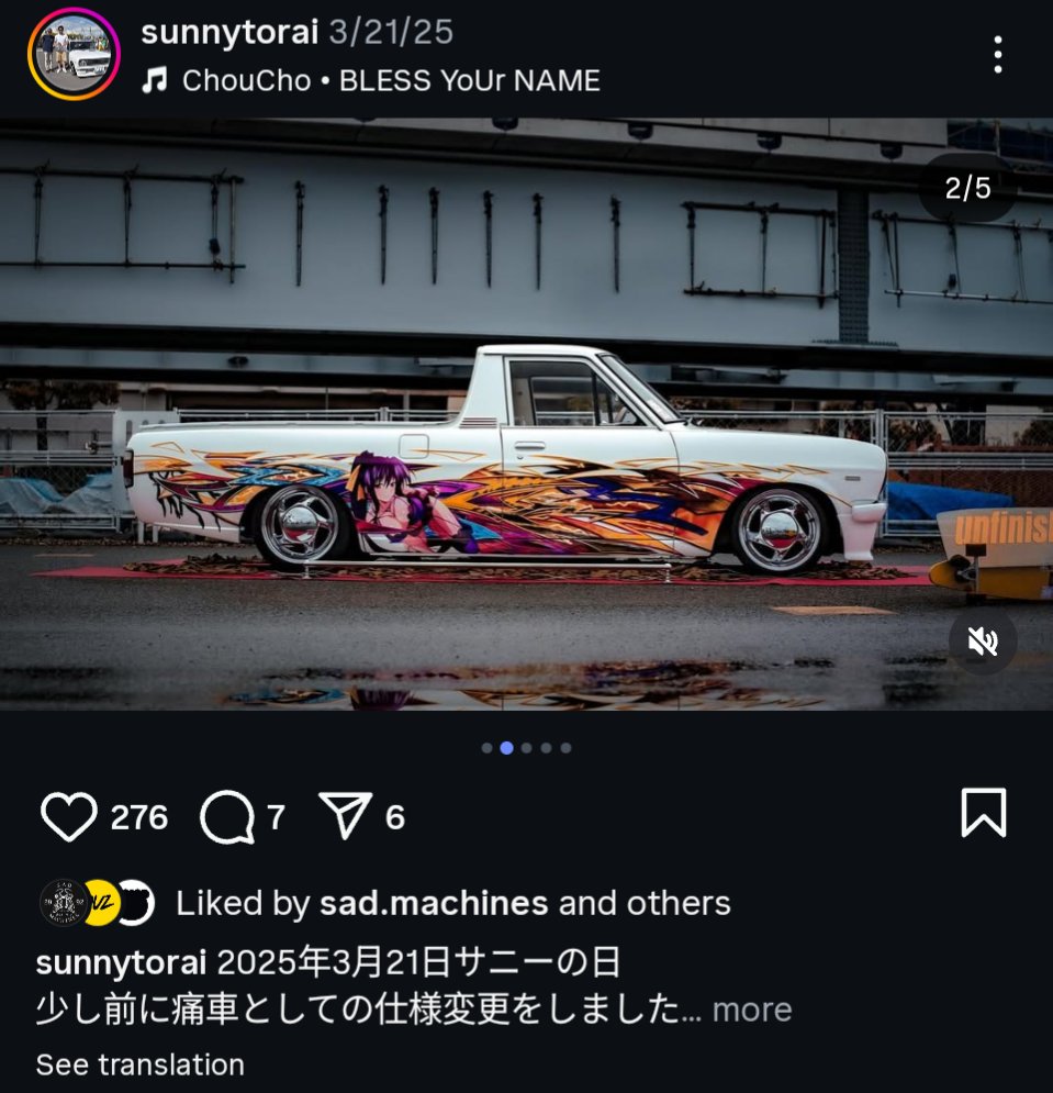 also shameless plug, both my itashas are designed by @sad__machines and you can take a look at his artbook about itasha as an artform here: https://yasoku.us/product/1000...