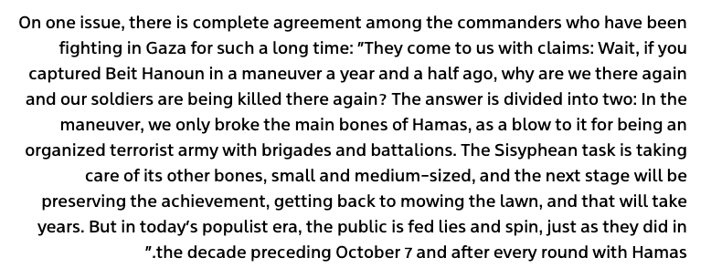 After breaking the "main bones of Hamas," the "Sisyphean task is taking care of its other bones, small and medium-sized, and the next stage will be preserving the achievement, getting back to mowing the lawn."