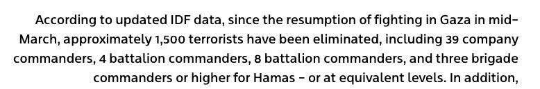 Oh I forgot one: The IDF believes it has killed "1,500 terrorists" since the resumption of fighting in mid-March. The Gaza Ministry of Health has reported 7,843 deaths since then, which would mean killing civilians to fighters at a roughly 4:1 ratio