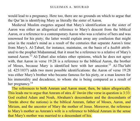 @JordanAcademia0 Mughira ibn Shu’ba reported: When I came to Najran, the Christian monks asked me, “You recite the verse, ‘O sister of Aaron,’ (19:28) but Moses was born long before Jesus by many years.” When I came back to the Messenger of Allah, PBUH, I asked him about it and he said,