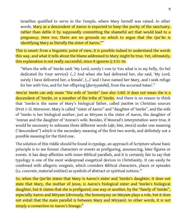 @JordanAcademia0 Or we could avoid all the linguistic and historical acrobatics and just admit that Muhammad ﷺ made a mistake ? Did any of Mary’s parents or grandparents were called (sister / brother of Aaron). And shouldn’t there be more than one “sister of Aaron” at that time and till now ?