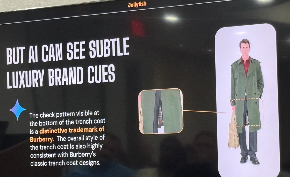 It’s wild how bad the AIs are at identifying consumer brands (and what that means). This example was interesting. The first slide shared several examples of catalog photos from well known high-end clothing brands (think Loro Piana). The AI’s could NOT identify hardly any of