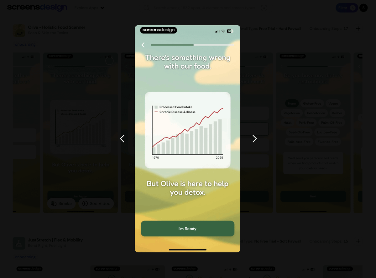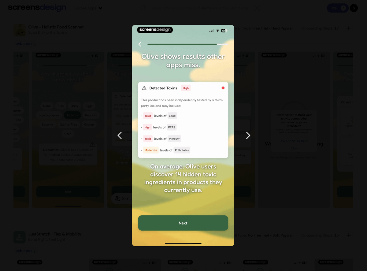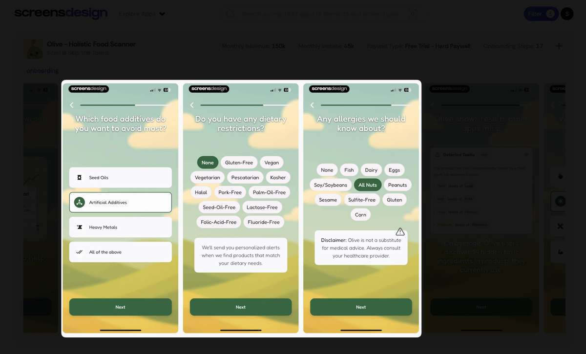 THIS APP IS CRUSHING IT Olive makes $150K/month by exposing what's really in your family's food, flagging seed oils, heavy metals, and artificial additives. The crazy part? it was launched less than 6 months ago Let´s break down their onboarding 🧵👇 1/19