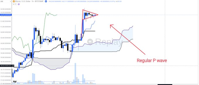 5 / 13 P wave (Also called Contracting Wave) P wave has three variations: 1⃣Regular P wave It has lower highs and higher lows, as a symmetrical triangle in Classical Chart Patterns. Regular P waves tend to break to the direction of the trend, or simply based on the