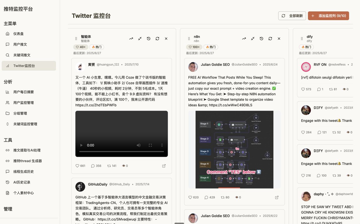 Tweetdeck这是一个神器,哪怕twitter搜索的api稀烂如泥,也挡不住它是个神器 只是大多数人不知道,不了解,也不懂得该如何使用它 最近因为做readdit,有很多人问我说为什么不做一个X的监控,我说我也有,但没公开 我自己都特意要去额外做一个tweetdeck,因为快速涨粉的秘密就在这里