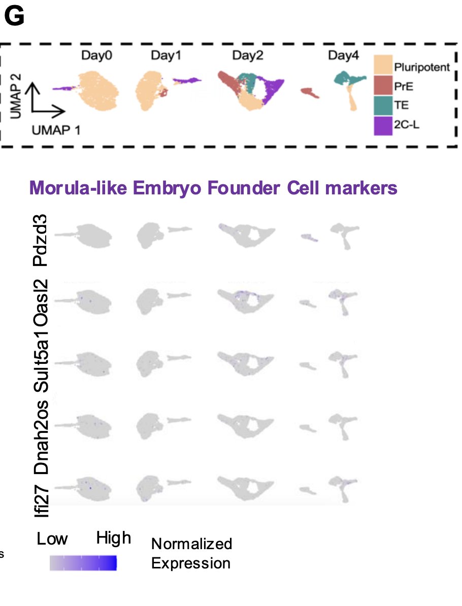 6/n 4-day rapid induction & maturation regimen from naive mouse ESCs showed TF induction of TE & PrE that correspond to E3.5-E4.5. Pls note PrE & TE are the only newly induced populations over 4 day time-course!, & there are NO induced 8-16-morula-like embryo founder cells.