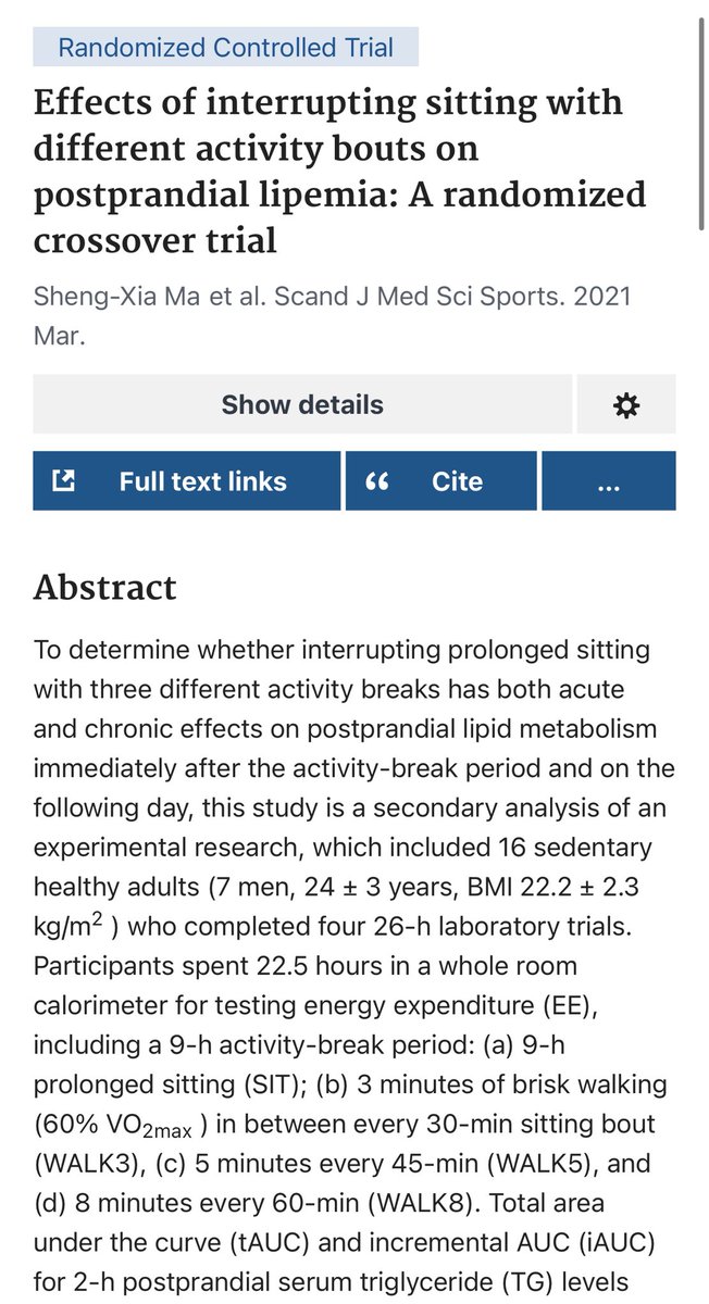 This is why lower level sustained movement is important. Breaking up sitting with 8 min brisk walks every hour trims next day post prandial lipemia by 11% Translation: micromovement prevents acute LDL-R overload, whereas being sedentary perpetuates it.