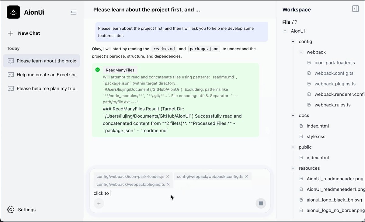 Geimini CLI GUI - 将命令行体验转换为现代、高效的 AI 聊天界面。 🗂️增强的聊天体验 -多会话管理 -持久化历史 -现代界面 💬文件与项目管理 -可视化文件树 -文件上传 -代码差异视图 ⚡ 开发者工作流 -函数调用 -富文本渲染 -简易设置 https://github.com/office-sec/...