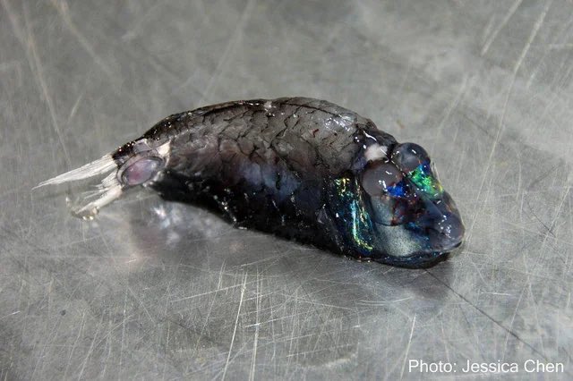 En la mayoría de las notas de medios nacionales leí que identifican a esta especie como Macropinna microstoma que corresponde a un pez con cabeza traslúcida. Otro bicho igual de alucinante pero que no es el viral.