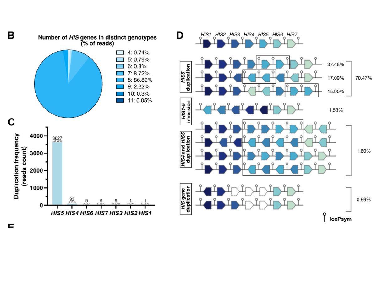 This fast and affordable workflow gave us functional fitness data on thousands of rearranged synthetic genotypes - a real treasure trove. For our poor performing design, which had a weak His5 promoter, the dominating rearrangement that led to improved growth was His5 duplication.