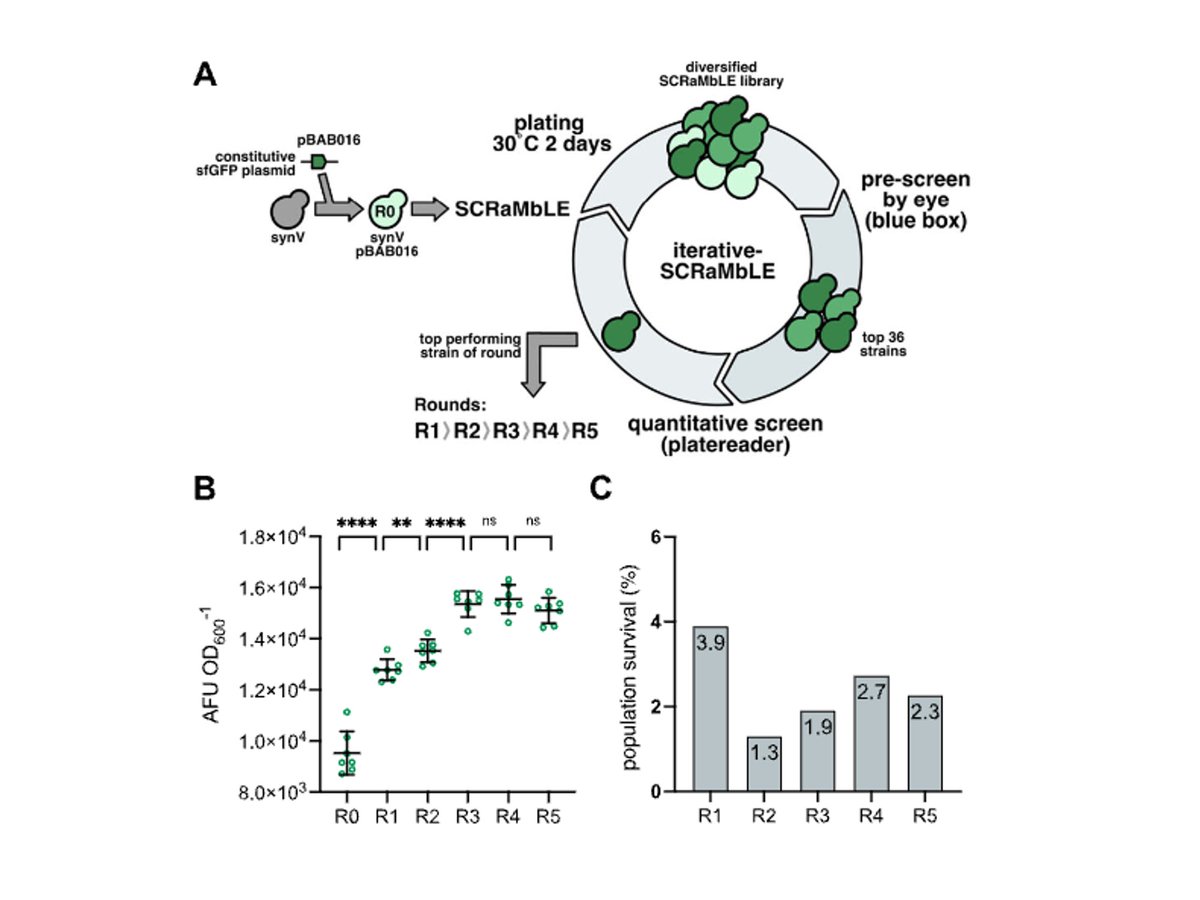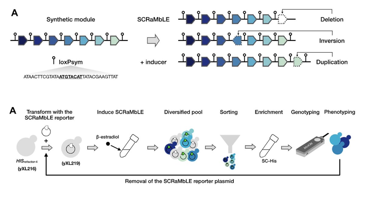 New paper from our lab on synthetic genome work in yeast is out - Iterative SCRaMbLE for Engineering Synthetic Genome Modules and Chromosomes. Exciting project led by Jane (Xinyu) Lu in our group, now online @NatureComms https://www.nature.com/article...