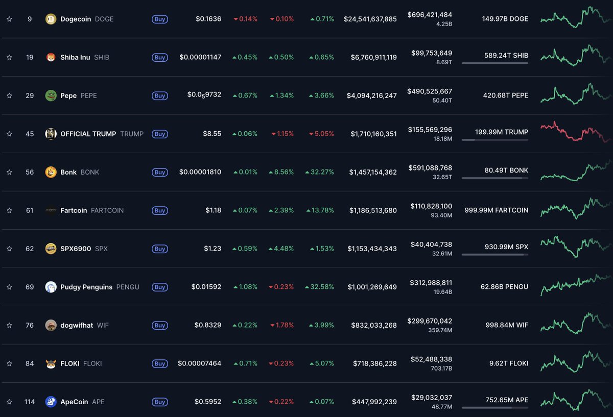 6 / $10M ā $1B: Now weāre entering rare territory. Out of thousands of memecoins, only 12 currently hold a $1B+ market cap. Letās break down what sets them apart š