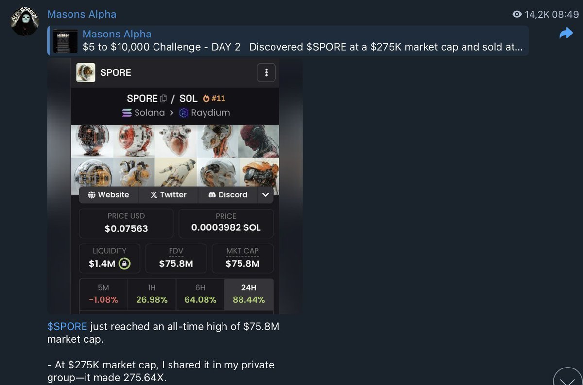 I used to post 100x plays here. Then came the copy-traders, frontrunners, and bots. Too risky. Too crowded. Now all alpha goes to my private Telegram. Itās still open ā but not for long. Once itās closed, thereās no way in. Last chance to join: http://t.me/masonsalpha