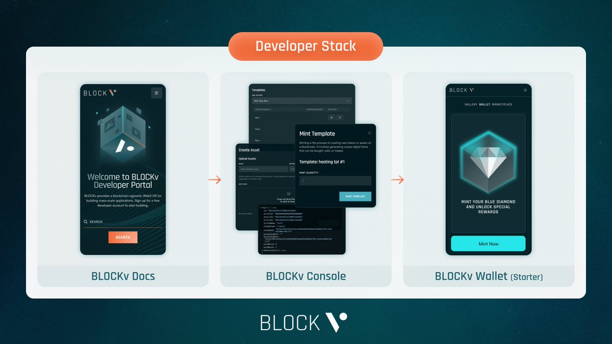 π BLOCKv Developer Portal brings together documentation, a live playground, and the BLOCKv Console. Start with the fully managed create-blockv-app and its customizable wallet, or integrate headless components into your own app. Build next generation of Web3 applications.