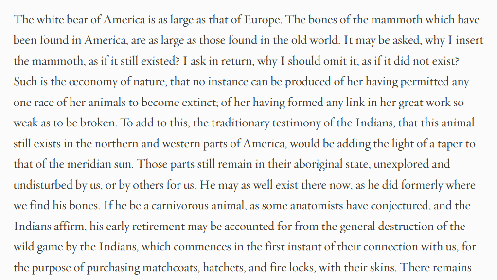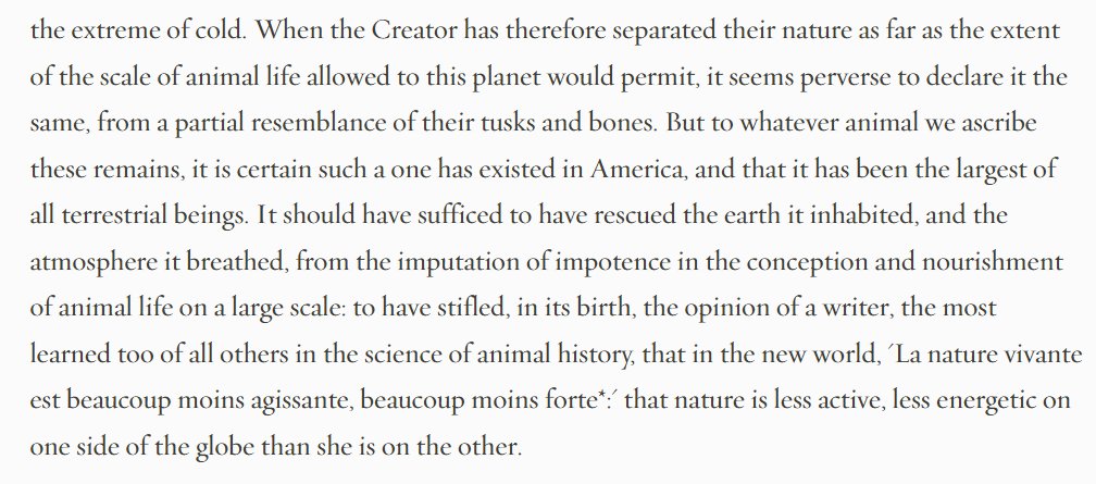 Jefferson's obsession with the woolly mammoth was part and parcel of his case for American greatness. It was critical that "the bones of the mammoth which have been found in America, are as large as those found in the old world" (Notes on the State of Virginia). Here's why.π§΅
