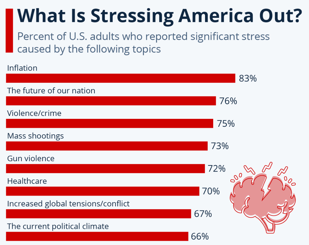 A U.S. survey showed that: • 83% of workers feel work-related stress • Stress increases risk of 75%–90% of diseases • 76% of adults suffer stress-related health issues As you can see, most worries come from predicting the future, not from the present. And that's the issue...