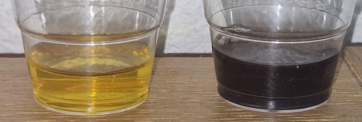 When you shine light into the two glasses, there is a very obvious difference.. The blessed water bends the light outward, radiating its color everywhere. The cursed water simply consumes the light. Murky and dark, and despite having lots of color, it does not radiate the color.
