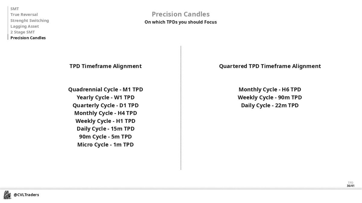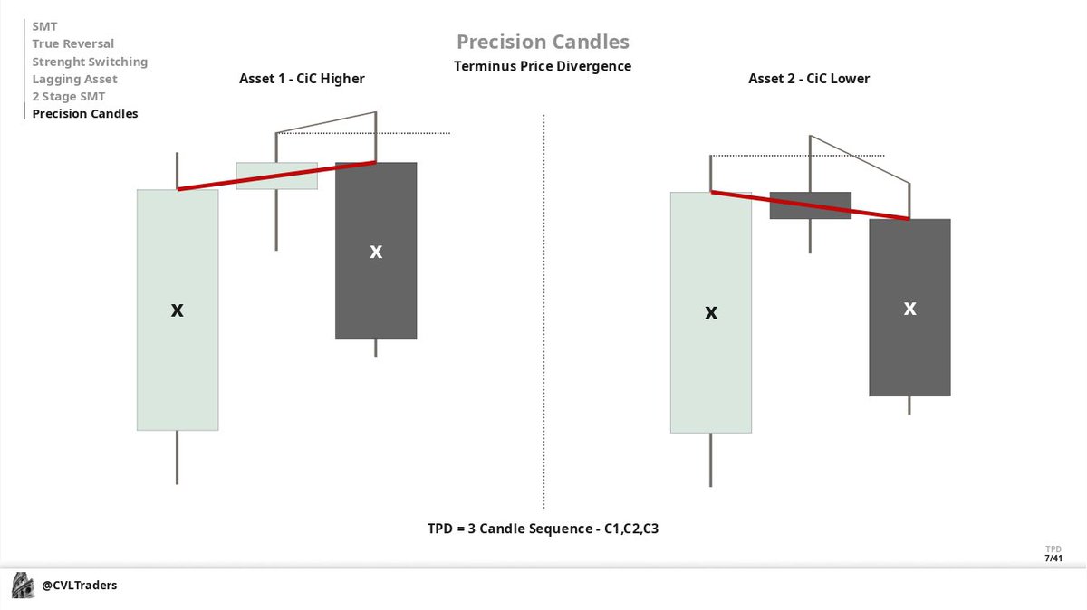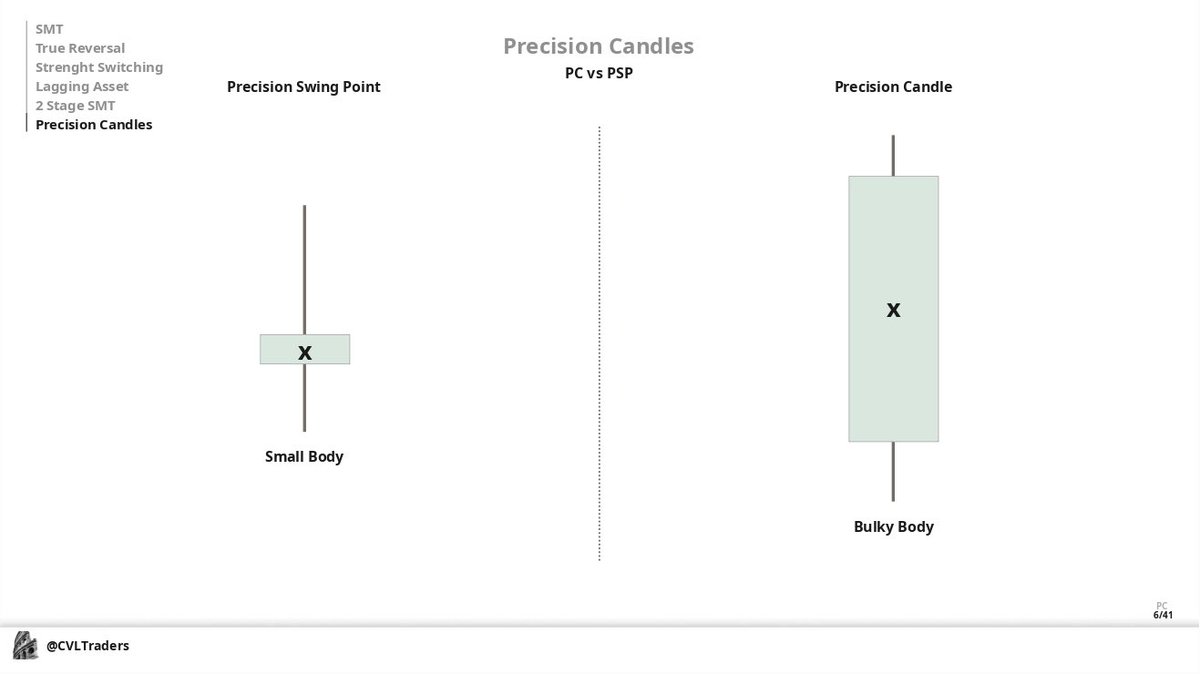 Precision Candles ( PC ) is when we have a divergence between candle bodies but don't create a swing point by candle 3, means the continuation on Triad that you're trading