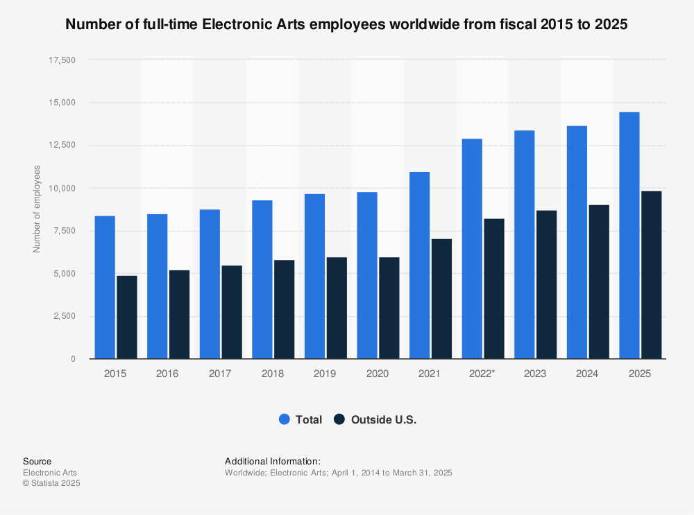 Between 2020-2022: Valve (336 employees): 2 games released EA (13,700 employees): 12+ major releases Ubisoft (19,000 employees): 15+ major releases Valve makes the same revenue as EA with 2% of the staff, but they barely ship products.