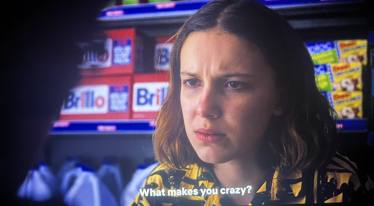 and it’s driving him crazy he says it to El “they say it makes you crazy” yes crazy means love but it also means literally crazy, Mike is telling the audience he is going crazy all in the same episode Robin and Steve are drugged and their storyline makes less and less sense.