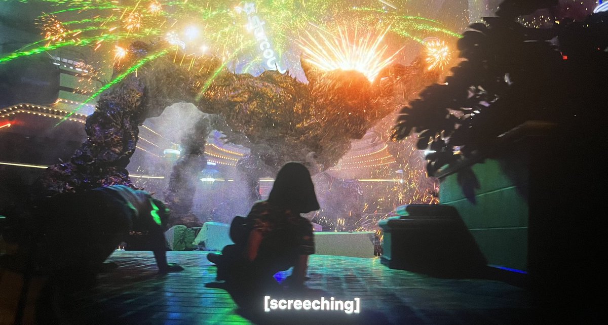 the answer “and there upon a rainbow is the answer to a never ending story” they attack the flesh monster with flamboyant rainbow colored fireworks and Joyce closes the gate, Mike’s secret is safe for now he gets back together with El at the end of the season.