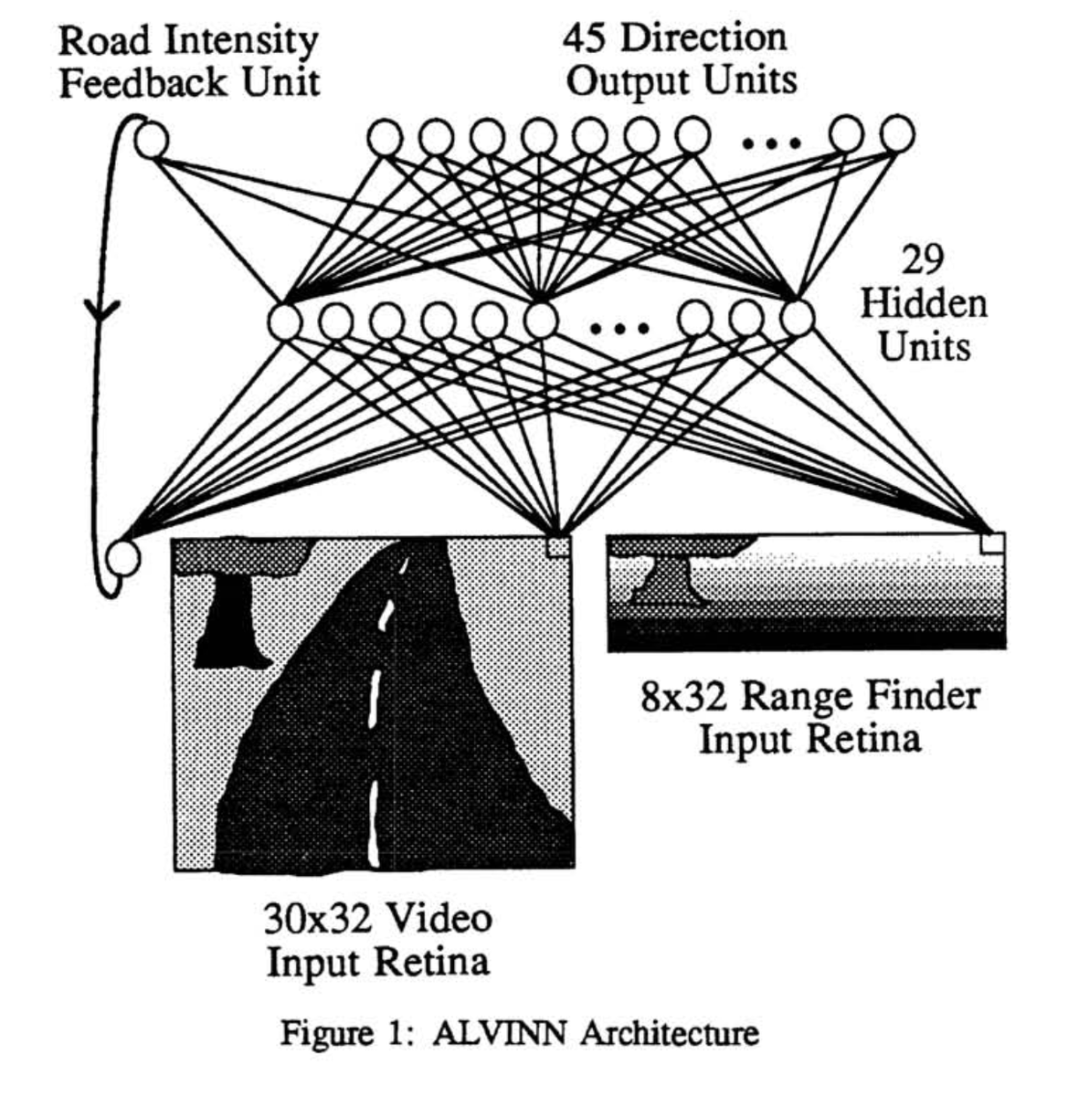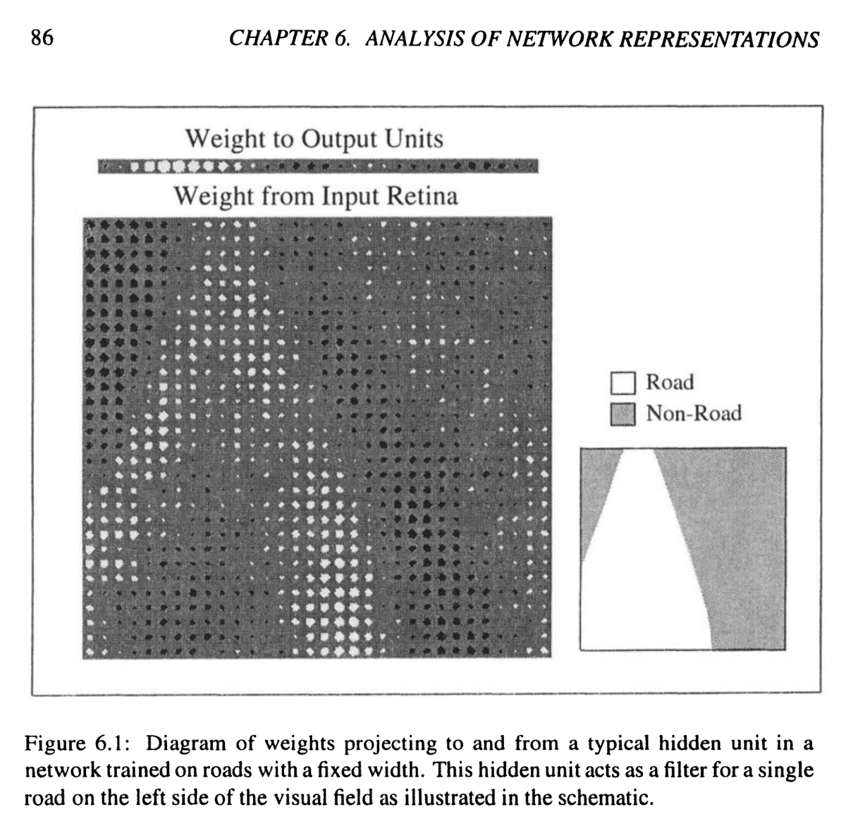 It's a really good PhD thesis, btw. It's about ALVINN (1989--1993), perhaps the first neural network self-driving car. In terms of historical impact, much more than DARPA's ALV project (which never used neural nets).