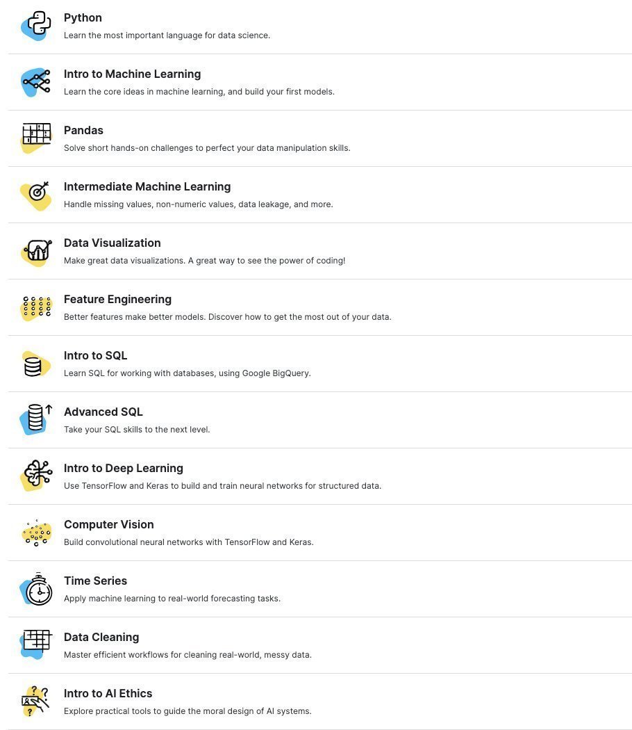 10. Kaggle Certifications ❯ Python ❯ SQL ❯ AI/ML, DL ❯ Data Science 🖇️ https://kaggle.com/learn