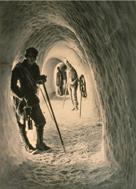 Soldiers stationed in the ice city. The ice tunnels protected soldiers from avalanches and snow storms. While most other WWI soldiers lived in muddy trenches, these guys were literally chilling in a glacier.