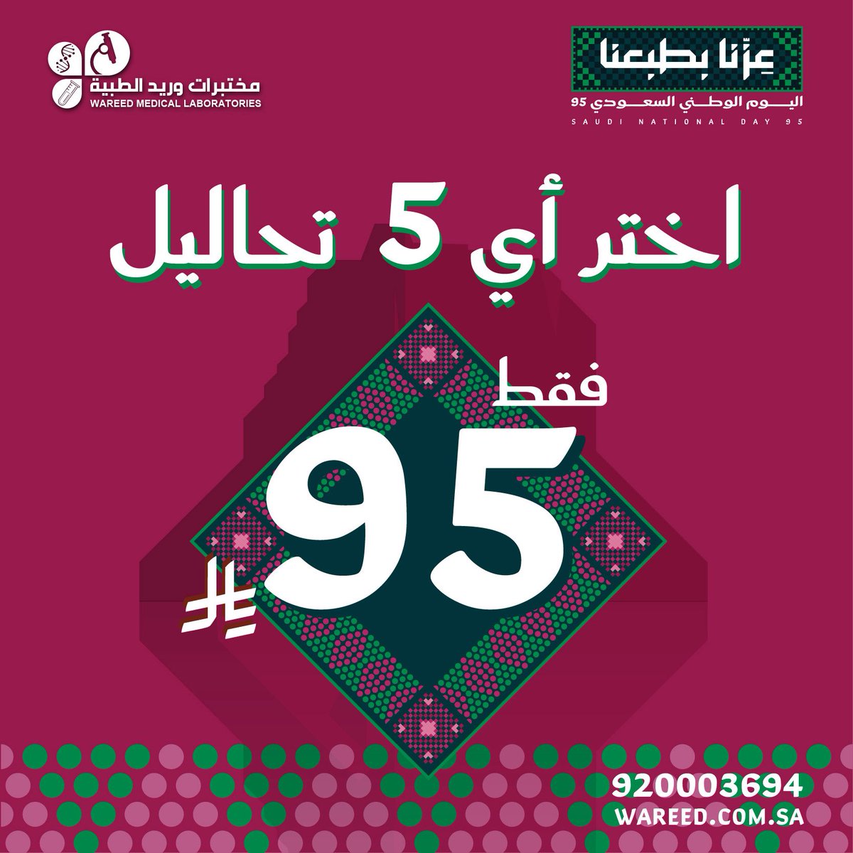 مختبرات وريد الطبية | @wareedlab للحجز والمزيد من الباقات : https://wareed.com.sa/lab/?utm... #عروض_اليوم_الوطني_95 #اليوم_الوطني_95 #عزنا_بطبعنا لمتابعة المزيد من العروض على الرابط : http://t.snapchat.com/X85vCOYl