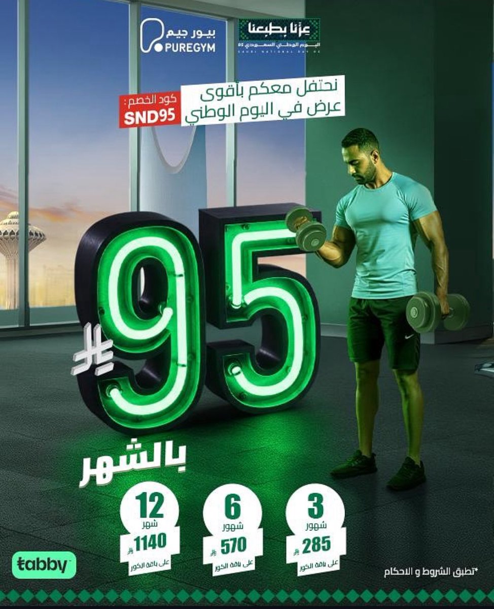 بيور جيم | @puregymKSA #عرض_اليوم_الوطني_95 #اليوم_الوطني_95 #عزنا_بطبعنا لمتابعة المزيد من العروض والتغطيات على الرابط : http://t.snapchat.com/X85vCOYl